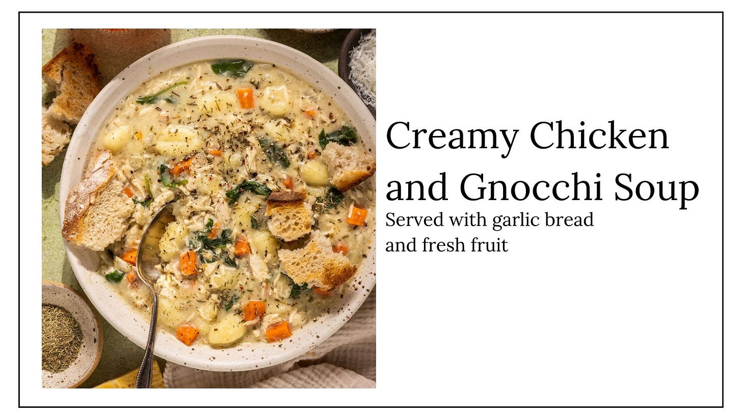 Leftovers of the Chicken and Gnocchi Soup served with roasted potatoes.