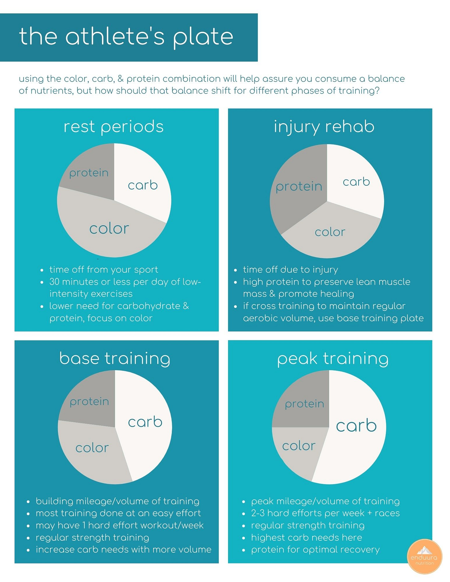First, the base phase often has a smaller energy demand on an athlete. Less mileage and less frequent/intense speed workouts categorize this phase of training for most athletes. By filling your plate with a larger portion of vegetables, you are less likely to eat more than what your body requires.