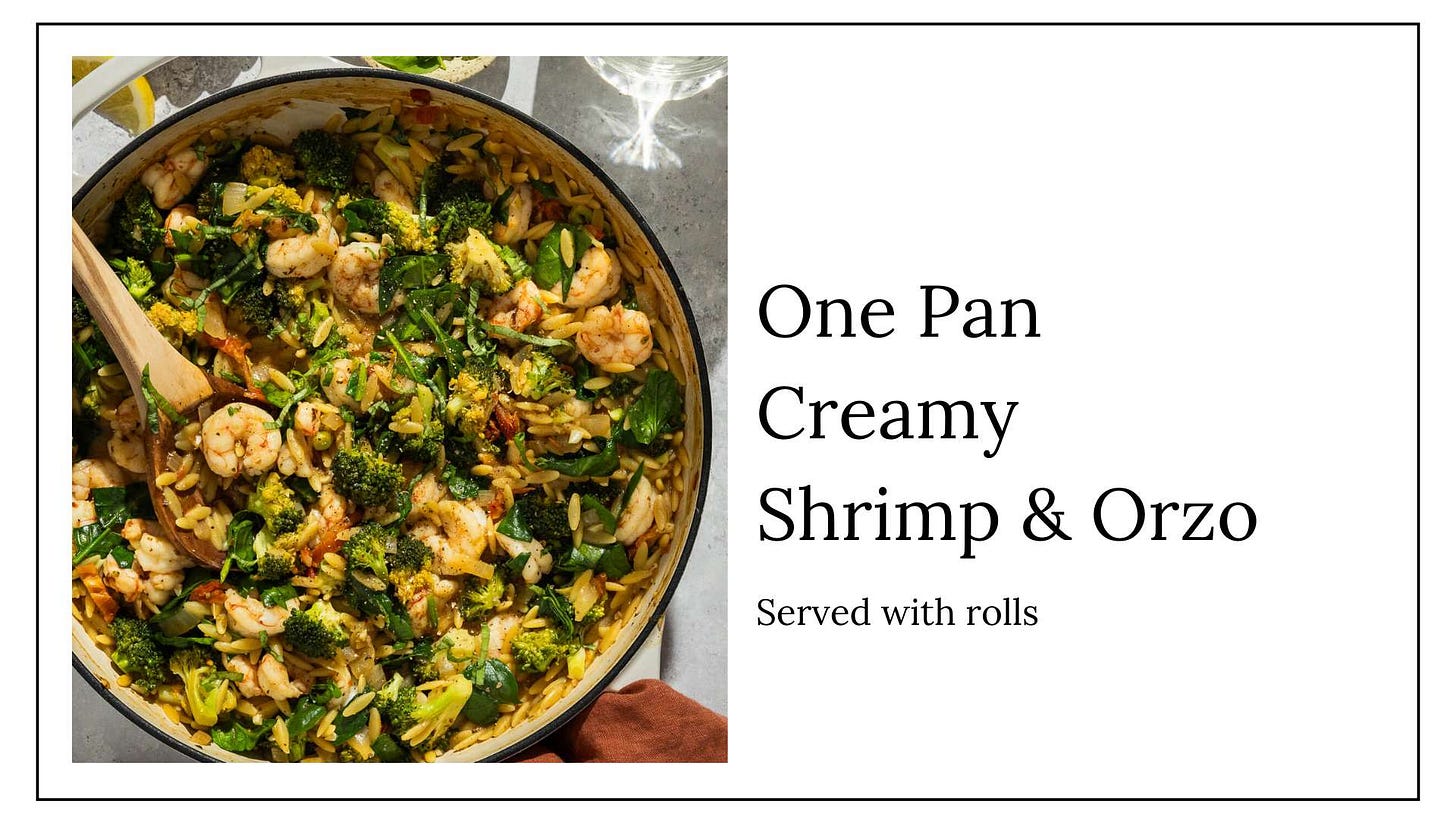 One pan creamy shrimp and orzo leftovers.