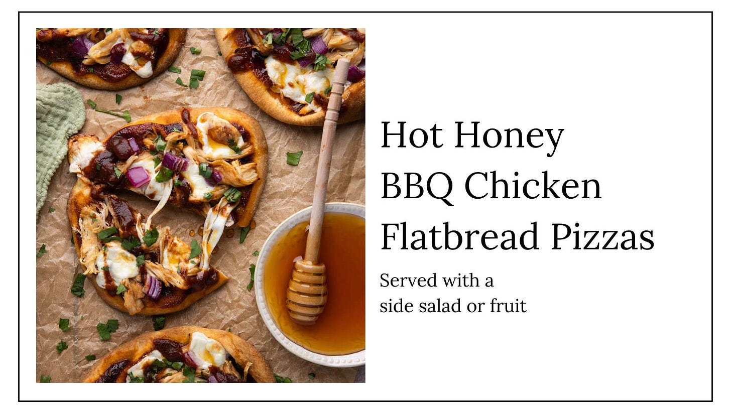Hot honey BBQ chicken flatbread pizza leftovers.