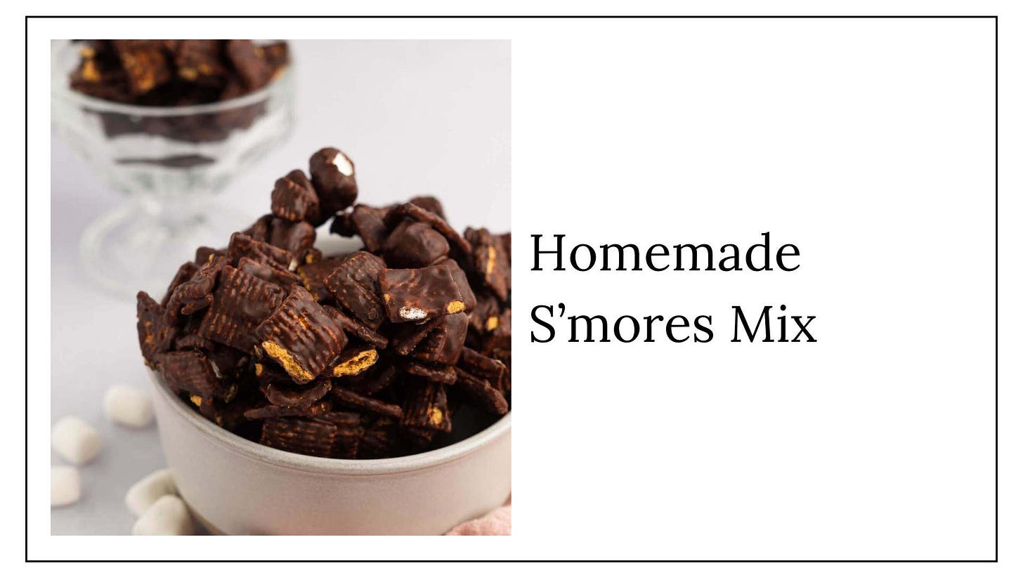 The girls and I love this s’mores mix! Clayton usually opts to just eat the golden grahams in milk, but he loves a few bites too.