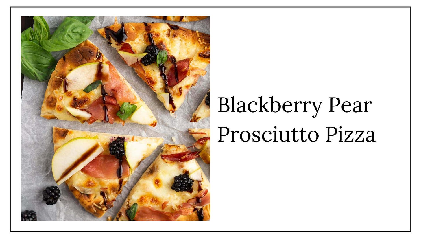 Blackberry pear prosciutto pizza.