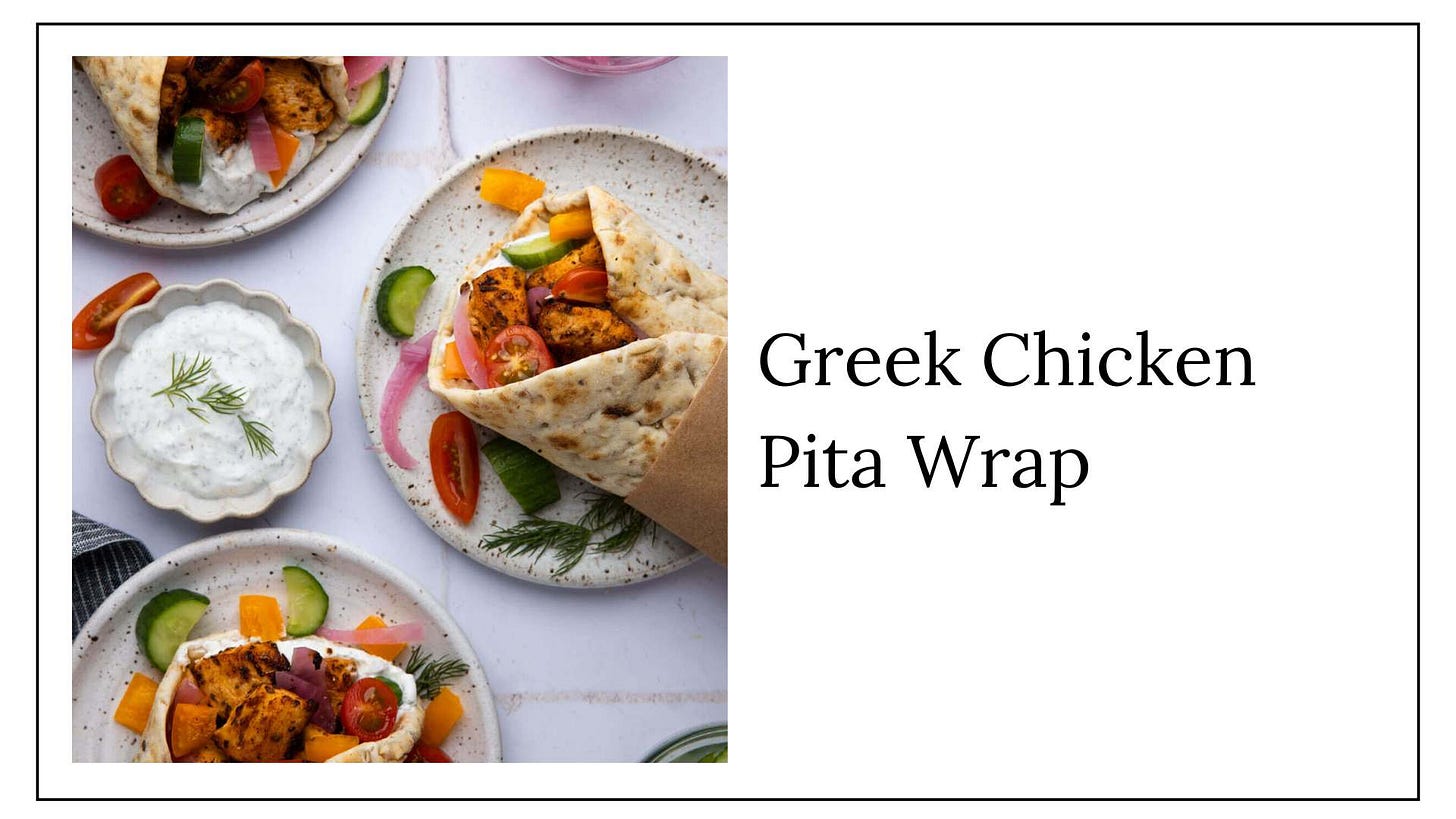 Greek chicken pita wrap leftovers.